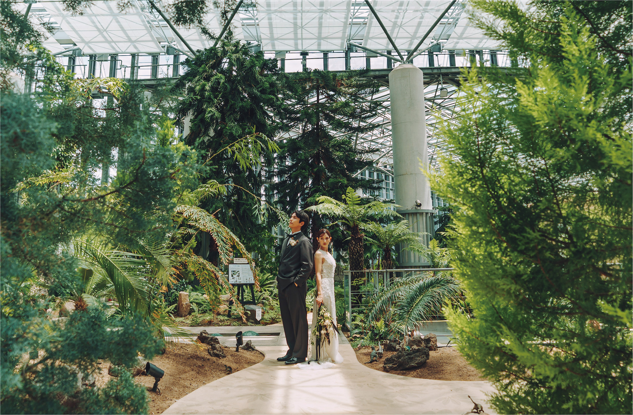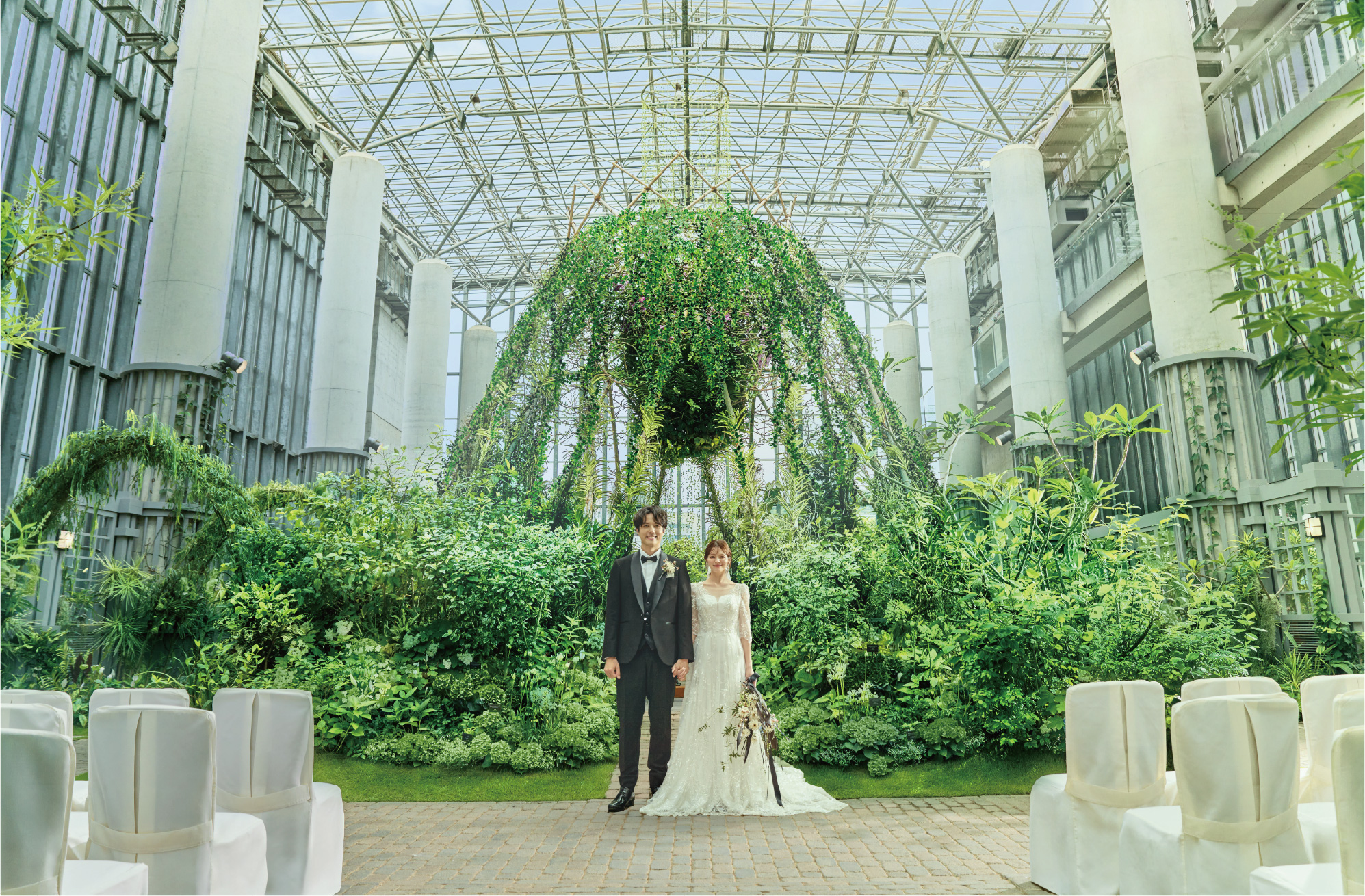 自然と一体になるようなセレモニーです。大きなガラス屋根から
