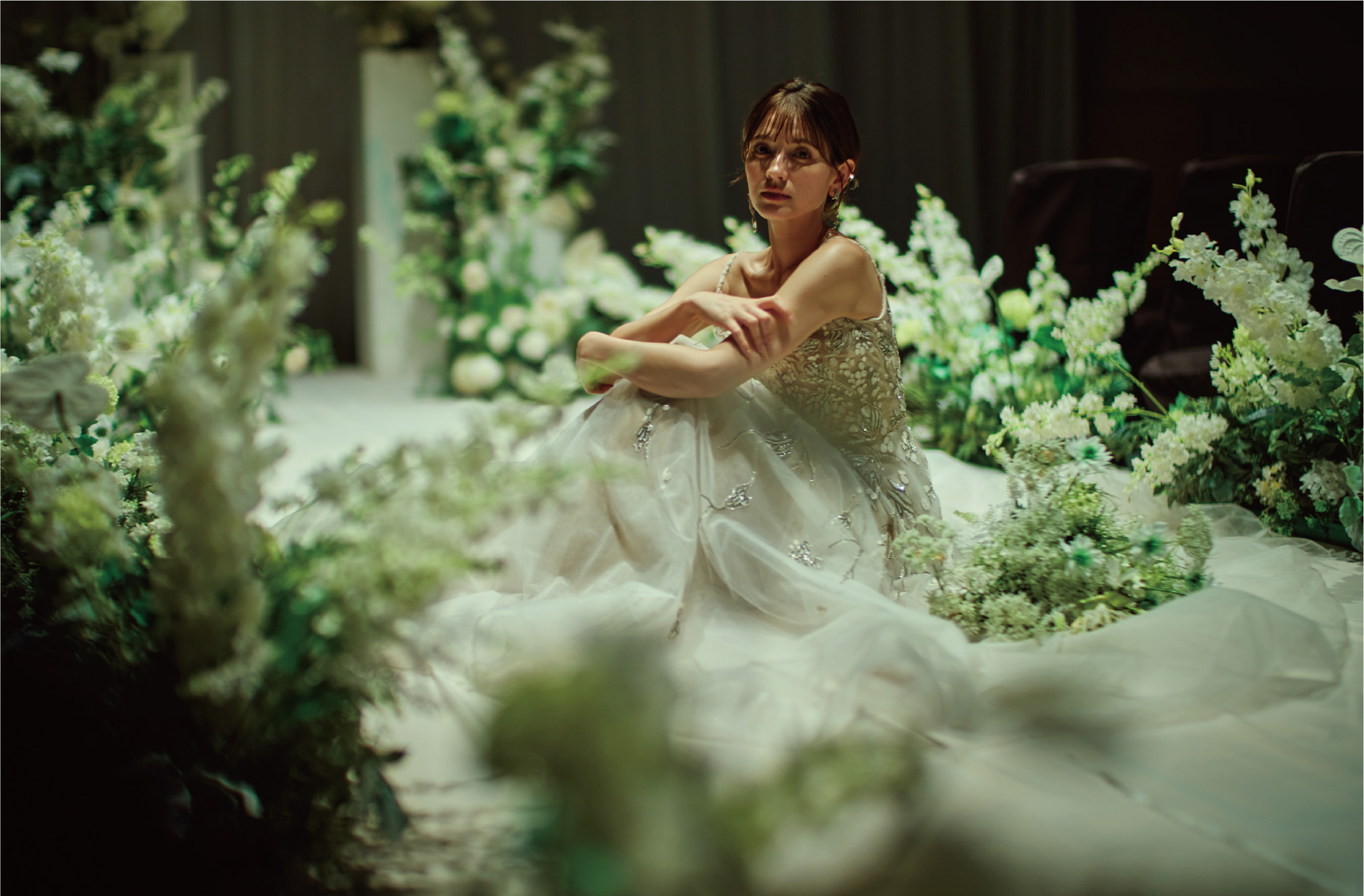 光と影のコントラスト、花とドレス、すべてが一枚の絵になるような