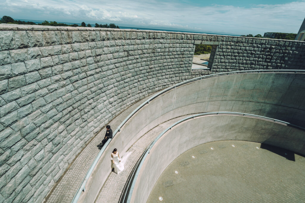 淡路夢舞台の円形・楕円フォーラムで、光に包まれるフォトウエディング